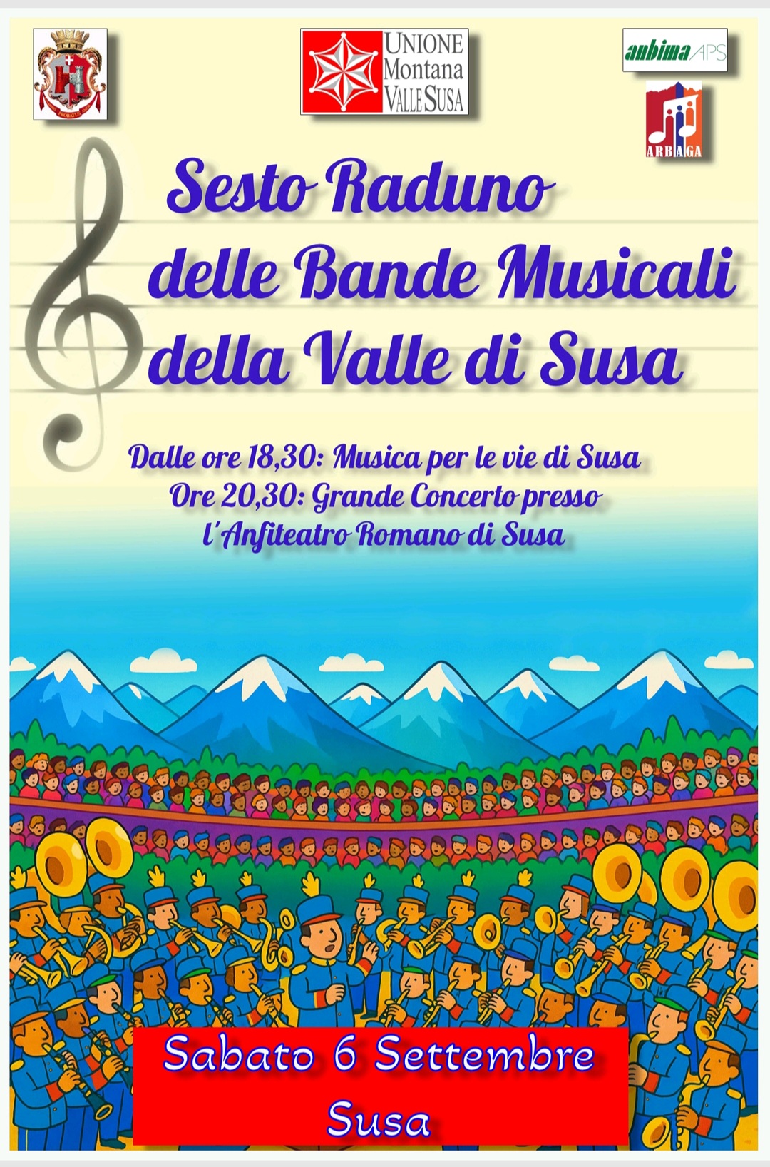 Sabato 6 settembre a Susa si svolgerà il Sesto raduno delle Bande Musicali della Valle di Susa.